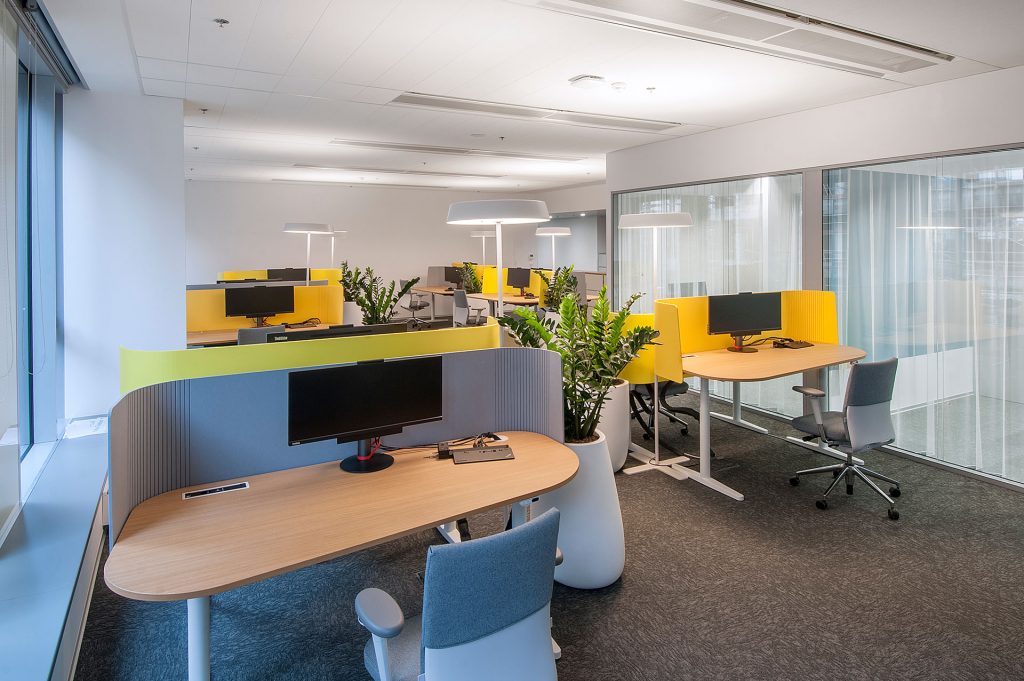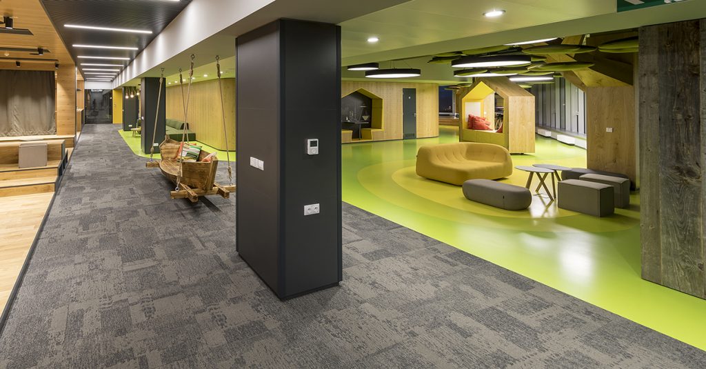 Kancelárske priestory sú navrhnuté tak, aby podporovali flexibilitu a poskytli veľkú variabilitu možností na prácu. Zamestnanci majú k dispozícii napríklad miestnosť na koncentrovanú prácu, kde je zakázané rozprávať sa a telefonovať, oddychovú a relaxačnú miestnosť alebo terasu na porady či prácu na čerstvom vzduchu.