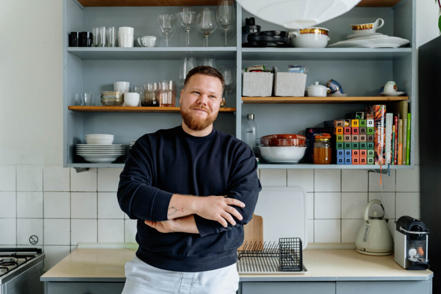 Štefan ako milovník varenia, skvelý kuchár a veľký gurmán kladie vo svojom bývaní dôraz na dobre vybavenú kuchyňu. „Pri kreatívnej práci, keď som v ateliéri aj 15 hodín, je pre mňa varenie forma oddychu. Pripadám si ako škriatok nad kotlíkom,“ smeje sa. Odkedy má svoj vlastný byt a nedelí sa o priestor so spolubývajúcimi, uvedomuje si hodnotu a dôležitosť oddychovej časti. „Je to brutálne,“ hovorí nadšene. Aj keď je umelec, momentálne toho v byte ešte veľa nemá. Plánuje totiž rekonštrukciu, pretože chce byt viac otvoriť. „Som vo fáze, že si dosť vyberám, lebo nemám ujasnené, aké vizuálne podnety tam po prerábke vzniknú. Mám však rád umenie od mojich rovesníkov,“ vysvetľuje.