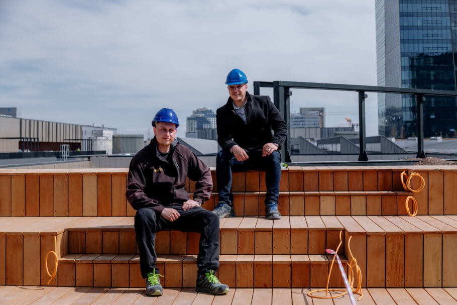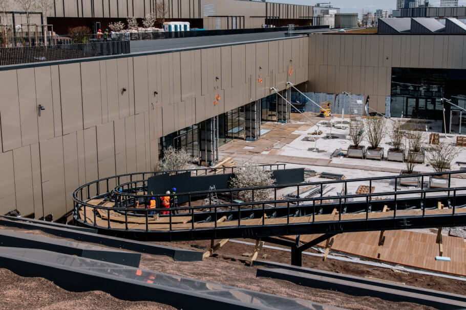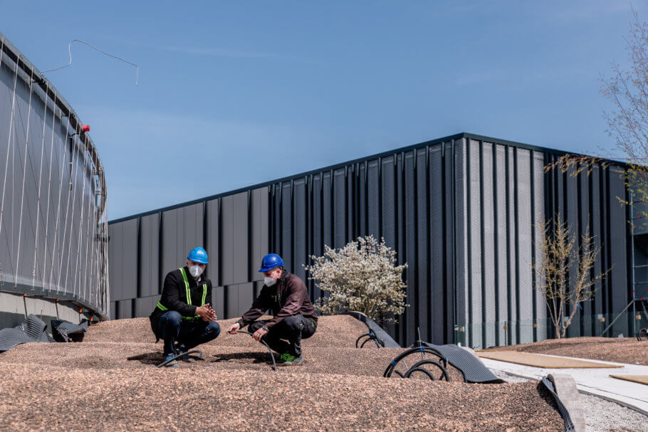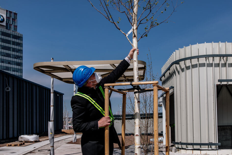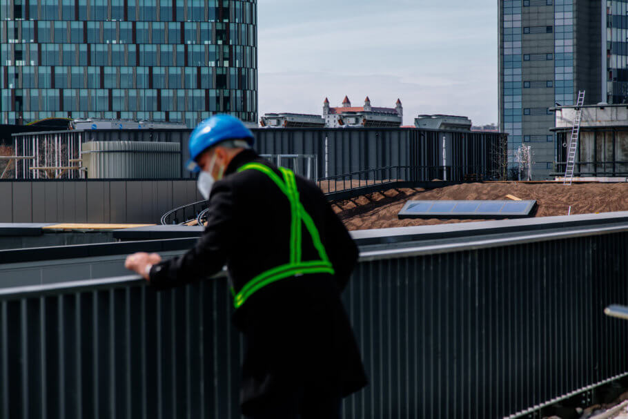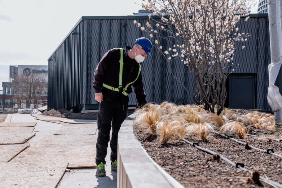 Záhradník je „čerešničkou na torte“, po nás už má zostať hotové dielo. Na takto veľkých projektoch je to výzva pretože musíme byť v koordinácií so stavbármi. Strechu riešime po jednotlivých fázach a intenzívne komunikujeme čo už môžeme, čo ešte nemôžme. Nedá sa to spraviť tak, že sa stavba uzavrie a pracovať budú len sadovníci. Keď sme začínali koncom roka 2019 robiť strechu od Svätoplukovej ulice veľa vecí nebolo dokončených a akoby sme dobiehali výstavbu. Začali sme terénnymi úpravami a rozkladaním substrátu. Projekt Nivy je rozdelený na viacero častí. Okrem strechy je to aj terén naokolo, ktorý má do 5 000 m2 sadových úprav. Keď sa nedalo robiť na strechách boli sme na teréne a naopak.