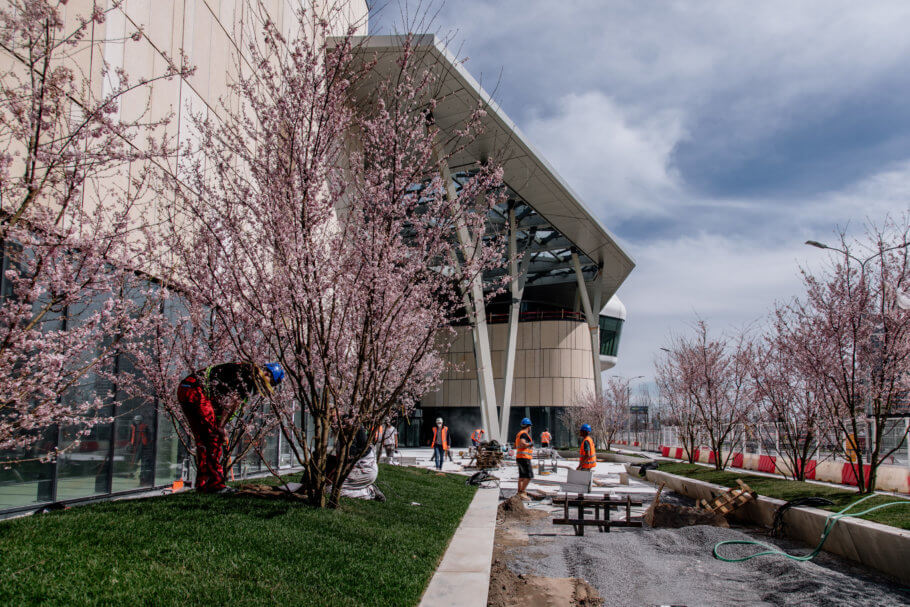 S týmto rátal už projektant sadových úprav. Na celom projekte bude celoročne niečo kvitnúť alebo sa meniť. Na jar to budú prvé cibuľoviny, tulipány a narcisy. Potom budú kvitnúť stromy ako čerešne, neskôr muchovníky. Sú tu stromy, ktoré menia farbu listu. Napríklad duby. Počas roku sa farbia od zelenej až po žltú či červenú. Brezy projekt obohatia svojou celoročne bielou kôrou, borovice zasa zeleným ihličím. Rovnako okrasné trávy sú zelené celý rok. Na jeseň sa vyviažu, čo zmení pohľad na sadové úpravy. Stále sa tu bude na čo pozerať.