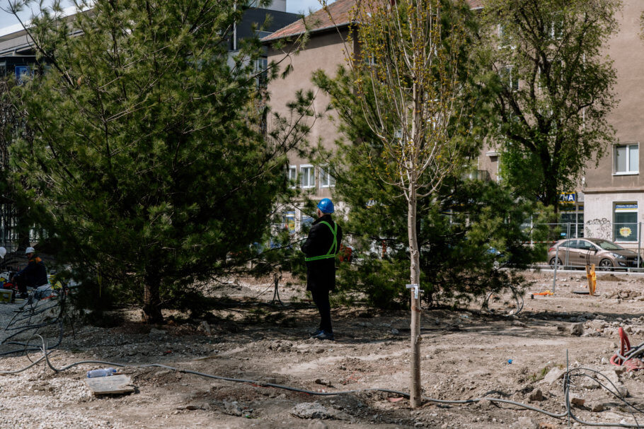 Nie sú to tie duby, ktoré voľne rastú v prírode. Aj s týmto uvažoval projektant. Použili sme vyšľachtené odrody rastlín. Sadili sme viackmenné solitéry, ktoré nepotrebujú až taký veľký koreňový priestor. Zároveň, ak vidíte násyp vysoký meter, neznamená to, že pod ním nie je jama hlboká aj 1,2 metra kde je dostatok substrátu na to, aby rastlina prežila. Pre každý strom sa počítalo s tým, aby mal dostatočný priestor a podmienky pre koreňový systém.