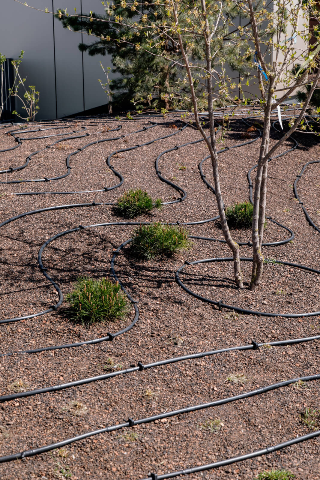 Je tu automatický závlahový systém. Pri rastlinách netreba stáť s hadicou v ruke. Náročnejší môže byť začiatok, kým sa zapoja trvalky a okrasné trávy. Tiež sme nepoužili žiadnu netkanú textíliu proti prerastaniu burín ani múčovací materiál. Prvé dva roky bude tieto plochy potrebné odburiňovať, čo môže byť výzva. Keď sa rastliny dostatočne rozrastú zabránia burinám rásť. Dohliadnuť tiež budeme musieť na rast stromov. Rástli v ideálnych podmienkach a my sme ich presťahovali do úplne iného prostredia. Preto je potreba sa o ne viac starať a kontrolovať ich prvé dva až tri roky.